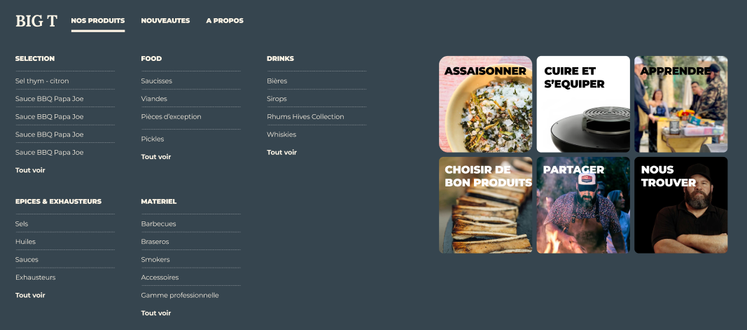 Tous nos produits ont été conçu en partenariat avec BIG – T, amoureux et référence mondiale de la cuisson au Barbecue.